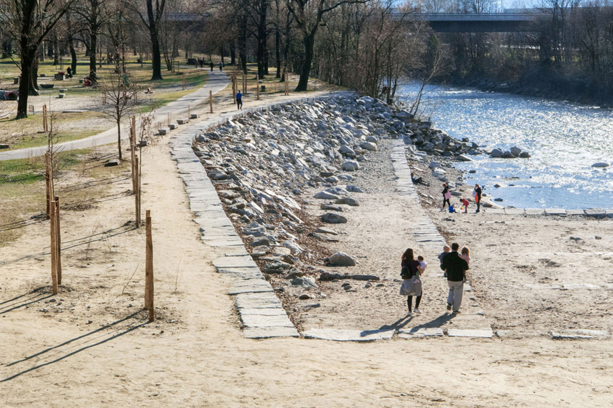 L’ansa Torretta fa parte di un progetto più ampio che riguarda la rinaturalizzazione e la messa in sicurezza idraulica del fiume Ticino. Un parco lineare all’interno del quale, lavorando sugli argini, si rende fruibile il fiume in aree urbane e si invita Bellinzona a riscoprire la propria identità fluviale. La visione che guida il progetto è di stabilire un cuore geografico, un nuovo spazio pubblico su cui riorientare lo sviluppo futuro della città. Il progetto struttura e valorizza gli spazi marginali quali ambienti naturali di interconnessione e garantisce la sicurezza della popolazione dalle piene favorendo la dinamicità naturale delle acque. Grazie alla rinaturalizzazione, il parco Saleggi è un habitat ricco di vita che accoglie vegetazione e fauna diversificate e resilienti.